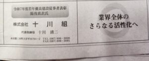 表彰式にて「若年優良建設従事者」として